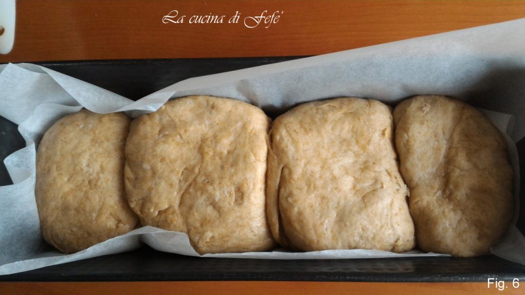 • Placez chaque roulé dans un moule à cake recouvert de papier cuisson (fig. 6).