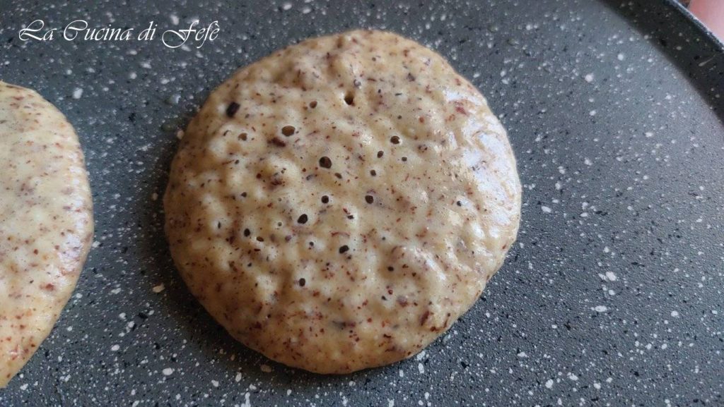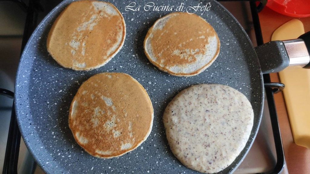 À ce stade, tu peux retourner les pancakes et poursuivre la cuisson pendant 1′-2′ encore.