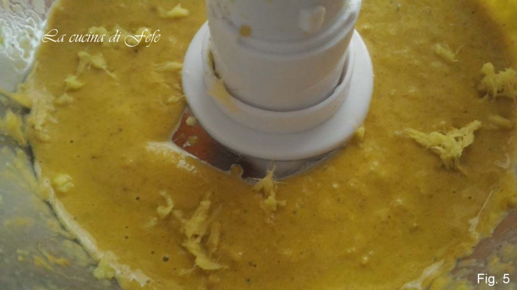 • Ajoutez enfin le gingembre frais râpé et mixez encore quelques secondes (fig. 5).