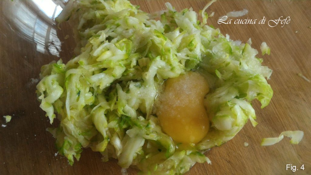 Commencez par laver et couper les extrémités des courgettes. Je les ai également pelées, mais c’est facultatif. Ensuite, râpez-les, ajoutez une pincée de sel et laissez reposer 30′.