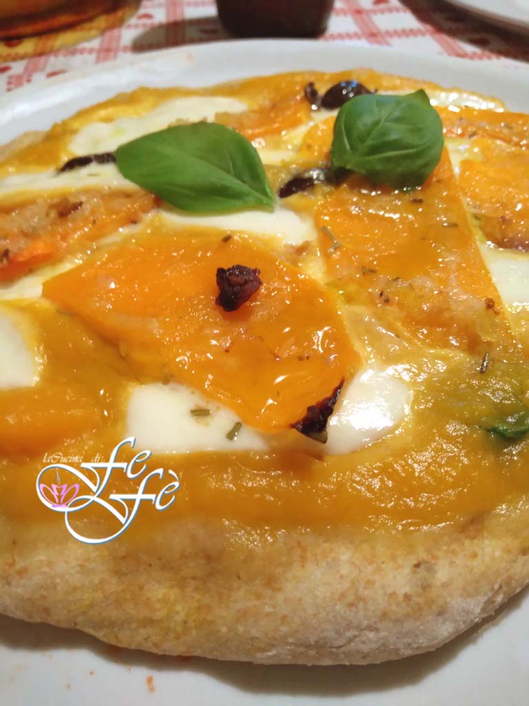 Il y a quelque temps, lors d’une conversation téléphonique avec mon amie napolitaine Giusy, en parlant de cuisine comme seules nous les femmes savons le faire, cette belle recette s’est révélée ! Souvent, faire de la pizza maison semble simple, mais le résultat final a de nombreuses incertitudes, et cela dépend de plusieurs facteurs. Tout d’abord, quelle levure utilise-t-on et quelle quantité, le temps de levée de la pâte, la technique pratiquée pour faire les pliures, le type de four et la constance de la chaleur qu’il est capable de maintenir, et ainsi de suite. On pourrait écrire un traité si l’on voulait approfondir le sujet, mais je ne me permets pas de m’exprimer, et je laisse à d’autres le soin de donner les bons conseils en la matière. En plus de cela, tout le monde ne tolère pas l’utilisation des levures, en particulier la levure de bière, plus commune. Par exemple, ne possédant pas de levain maison, plus indiqué, je me limite beaucoup pour éviter d’avoir des problèmes digestifs. La fermentation des levures dans l’estomac est en effet souvent un processus très délicat. C’est pourquoi j’ai accueilli avec joie la proposition de mon amie lorsqu’elle m’a expliqué que cette pâte, utilisée par les pizzaiolos napolitains, prévoit un peu moins d’un gramme de levure ! Oui, vous avez bien lu ! De plus, une fois la pâte préparée, vous la laisserez reposer au frigo pendant 24 heures et n’y penserez plus ! Le lendemain, vous la laisserez s’acclimater à température ambiante pour ensuite la laisser lever jusqu’au moment de la découpe, et enfin étaler les pizzas à la main, sans rouleau. Je vous dis que cela donnera une pizza très légère et surtout digeste qui cuira en très peu de temps ! Je l’ai juste rendue plus rustique en ajoutant une part de farine intégrale. Je dois dire que mon mari en raffole, donc une fois par semaine, je suis obligée de la préparer rigoureusement ! Je vous en propose deux versions, une avec fior di latte et olives, et l’autre avec crème de potiron. Pour une cuisson optimale, je recommande d’utiliser la pierre réfractaire, mais sinon, vous pouvez contourner le problème avec une petite astuce ! Découvrez comment.