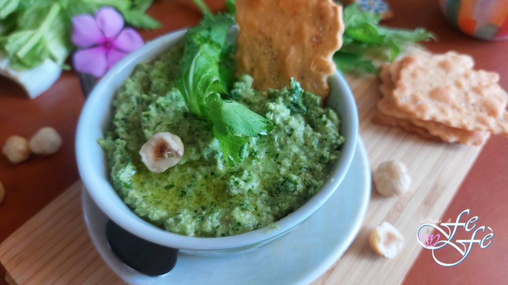 Aviez-vous déjà utilisé le céleri pour préparer un bon pesto ? Non ? Alors c’est le moment de l’essayer absolument ! Je l’ai réalisé en utilisant d’abord uniquement les feuilles et en ajoutant des amandes ainsi qu’une quantité modeste de pignons, mais il m’est arrivé par la suite d’utiliser également les tiges de céleri et de remplacer les amandes par des noisettes, et je dois dire que c’était encore meilleur ! L’association entre ces simples ingrédients de qualité a donné naissance à un condiment super sain et polyvalent, en plus d’être étonnamment savoureux ! En le rallongeant avec le bouillon de cuisson, vous pourrez assaisonner vos pâtes préférées ou, servi plus crémeux et épais, il sera excellent pour un apéritif, accompagné de crostini, bruschettes, gressins ou tout ce que votre imagination vous suggère ! Évidemment, les tiges qui resteront ne seront pas jetées, mais largement utilisées, presque comme une sorte de crudités avec d’autres légumes, et je vous assure que vous ferez sensation !
