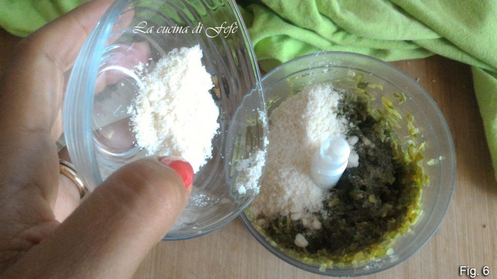 Ajoutez également l’ail en poudre, le parmesan et le pecorino râpés (fig. 6).