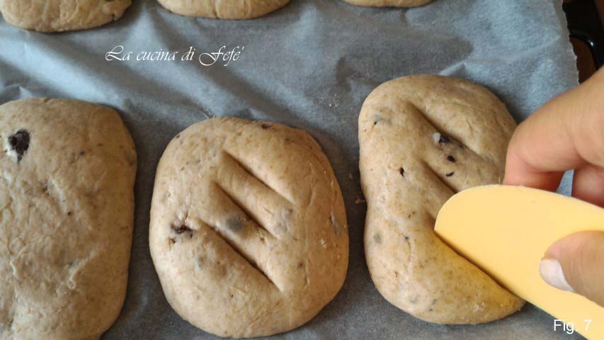 Faites des incisions en diagonale sur la surface des petits pains (fig. 7).