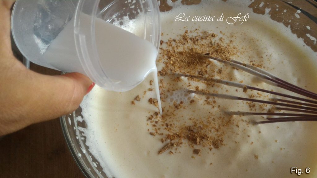 • Ajoutez, en alternant avec le lait, les poudres petit à petit pour éviter de rendre la pâte trop dure, en reprenant avec les fouets électriques (fig. 7).