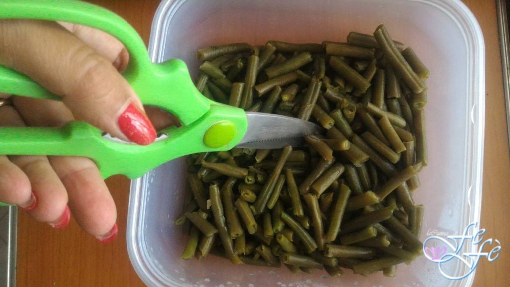 Rincez-les bien et cuisez-les dans de l’eau salée pendant environ 18′-20′. Égouttez-les, transférez-les dans un bol et avec des ciseaux de cuisine, coupez-les en trois segments.