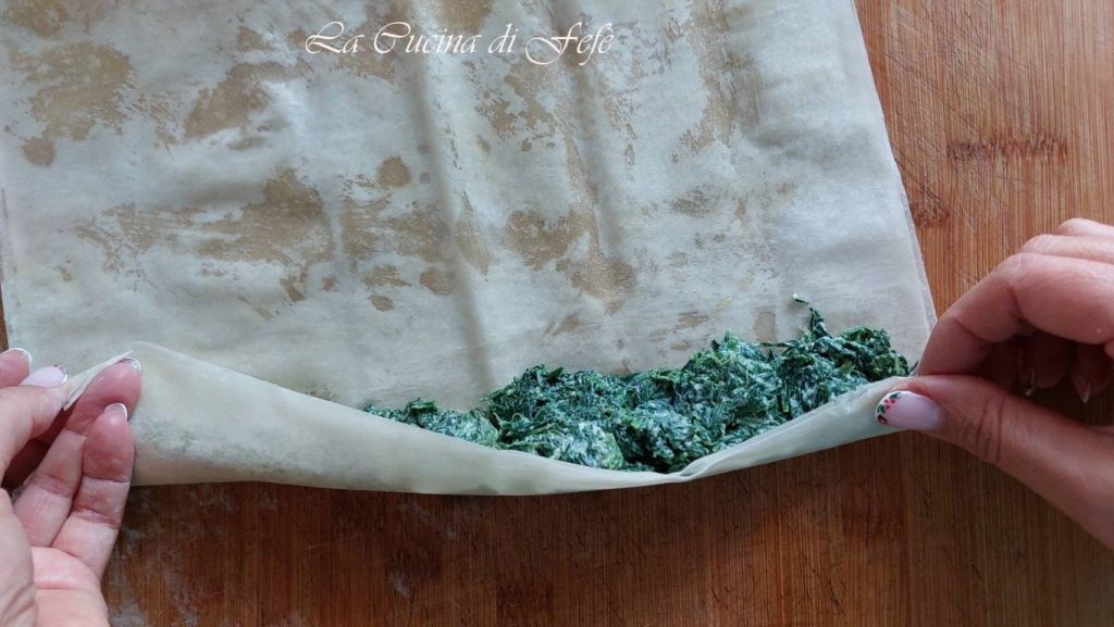 🟣*Pour une roulade de pâte filo parfaitement croustillante, cela dépend de deux facteurs : la gestion de l’humidité et l’utilisation correcte des matières grasses. Comme l’humidité est l’ennemi numéro un de la pâte filo croustillante, assure-toi de presser les épinards avec force après les avoir cuits (même avec un torchon propre non traité avec des adoucissants) et égoutte bien la ricotta. Une farce sèche garantira que la pâte reste croustillante.