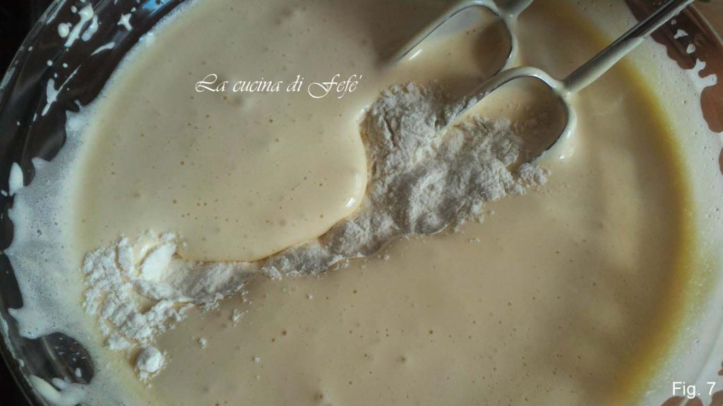 Pendant ce temps, préparez votre biscuit en travaillant pendant 5 minutes les œufs dans un bol avec un batteur électrique jusqu’à obtenir un mélange très mousseux.