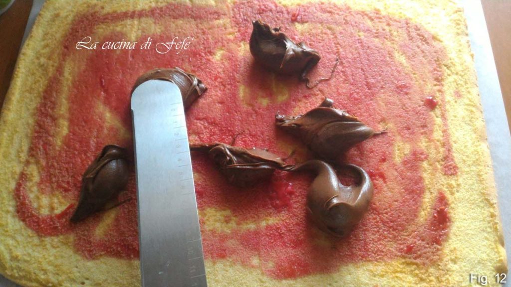 Roulez le tout et laissez refroidir complètement, en plaçant le roulé avec la fermeture vers le bas. Lorsque le roulé sera refroidi, cela prendra environ 1 heure, déroulez-le à nouveau et imbibez toute la surface avec le jus des fraises.