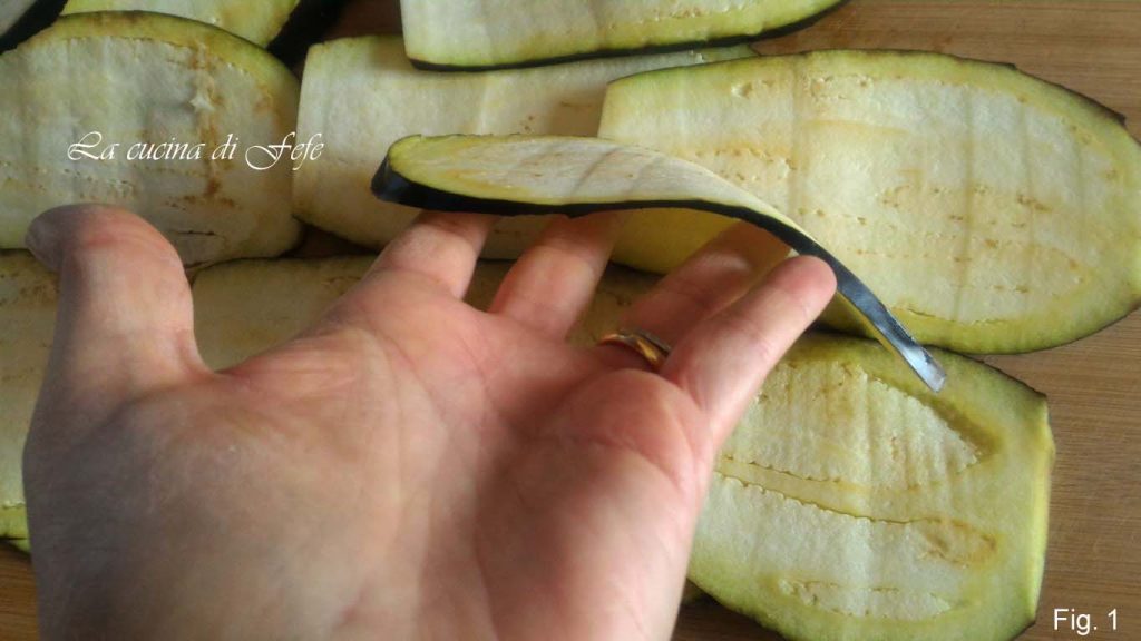 Lavez les aubergines, séchez-les avec une feuille de papier absorbant, retirez le pédoncule, puis coupez-les en tranches fines d’environ 3-4 mm.