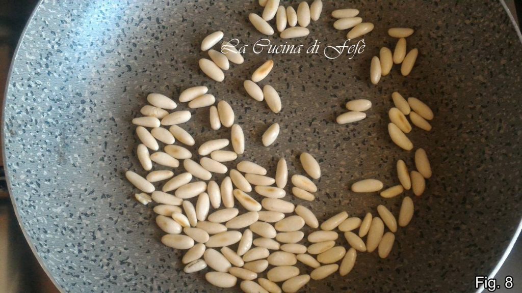 Dans une petite poêle antiadhésive bien chaude, faites griller les pignons quelques minutes, en les remuant continuellement pour ne pas les brûler (fig. 8).