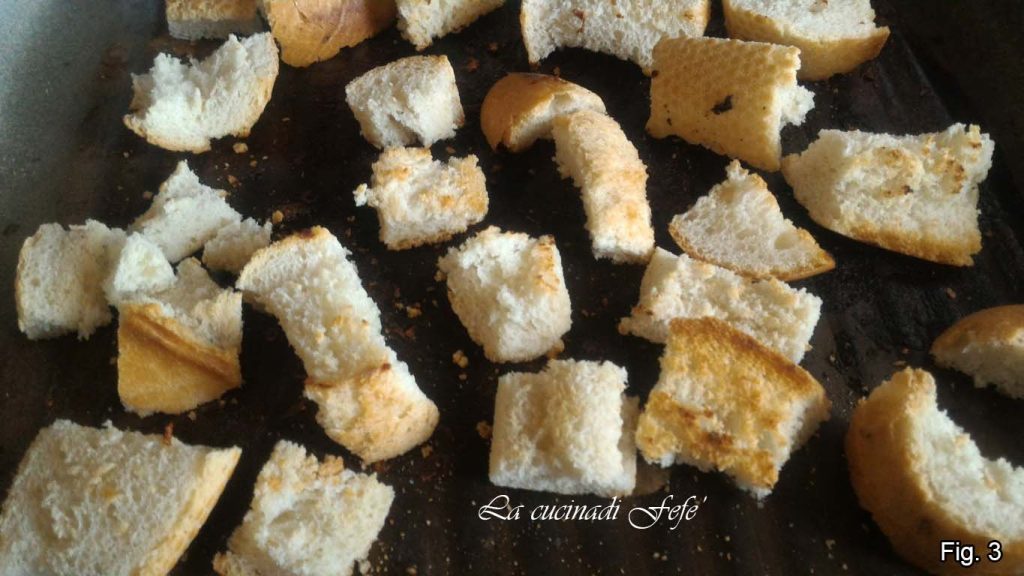 Sur une planche à découper, coupez la mini baguette en tranches puis en petits morceaux.