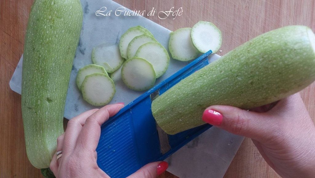 • Avec une mandoline ou le même couteau, coupez-la en rondelles mais pas trop fines, soyez prudents.
