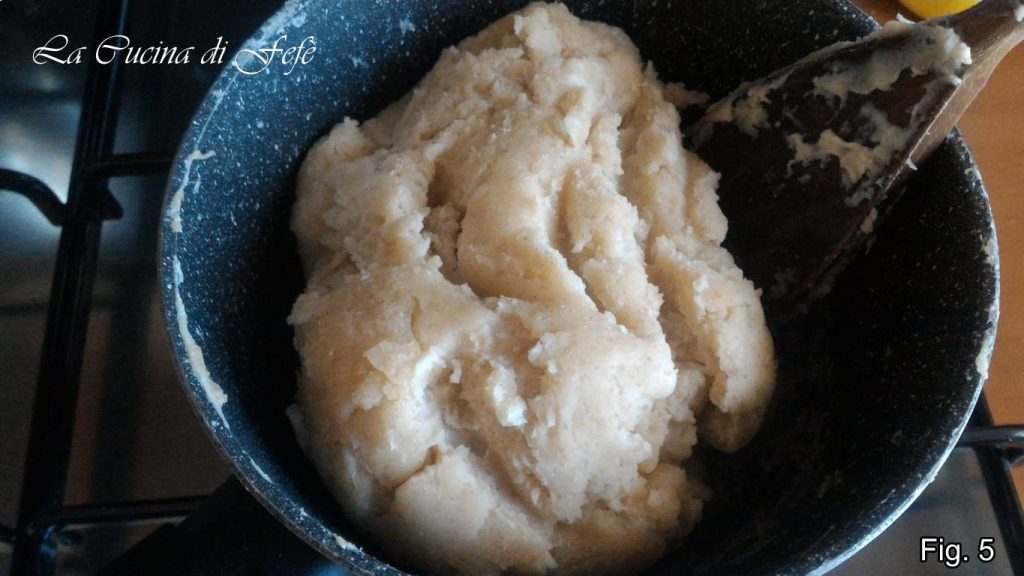 • Après quelques minutes, le mélange commencera à se détacher des parois de la casserole et à devenir compact (fig. 5).