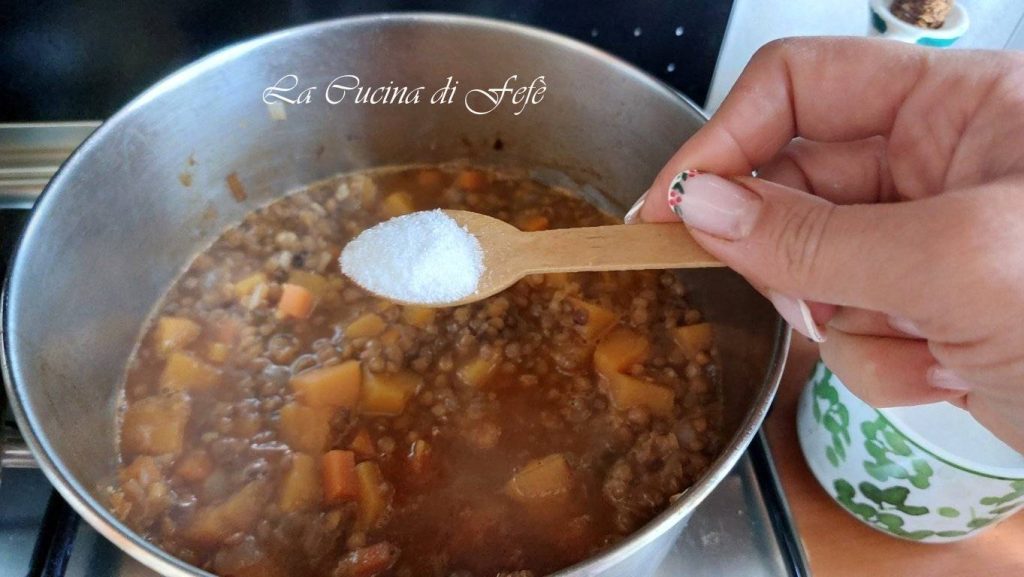 À 10′ de la fin de la cuisson, ajuste le sel et mélange bien.