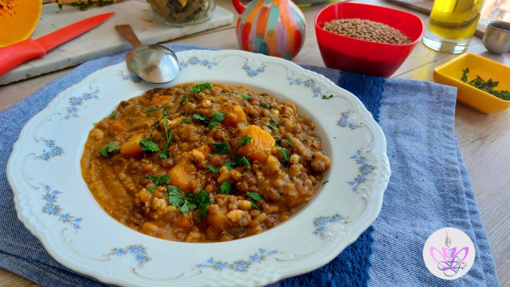 Nous venons d’entrer dans les célèbres Jours de la Merla. Quel meilleur moment pour se réchauffer et se chouchouter avec une soupe de céréales fumante et enveloppante avec crème de courge et lentilles? Un plat unique, nutritif et 100% végétal, conçu pour réchauffer le cœur et recharger l’organisme avec fibres et protéines nobles.