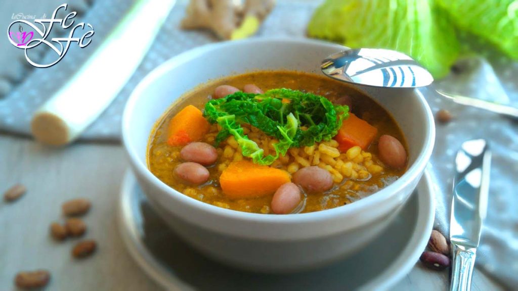 Une autre journée sous le signe du temps instable, entre soleil et nuages, et une brise plutôt perfide qui s’avère être un traître ! En gros, on ne sait plus dans quelle saison nous sommes ! En février, nous avons eu des journées fabuleuses, alors que maintenant, en mars, il semble que le climat se moque de nous en jouant avec nous ! Et comment faire face à ces changements climatiques sinon avec un bon plat chaud, sain et réconfortant ? Voici ma proposition du jour : une soupe au kamut, une céréale considérée comme l’une des plus complètes sur le plan nutritionnel, cuite dans un bouillon de légumes à base de courge, blettes, et chou frisé, parfumée au romarin, curcuma, et cannelle. Un plat de style vegan, grâce à ses ingrédients d’origine non animale. Une soupe au goût légèrement exotique, pas banale, qui renferme également une richesse de nutriments unique, car elle contient des glucides, des protéines végétales, des sels minéraux, et des vitamines. Et nous savons à quel point cela peut être une aide précieuse pour notre organisme dans une période aussi délicate que celle que nous traversons.