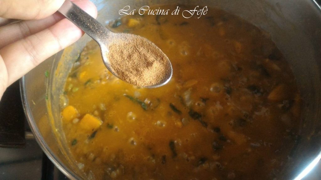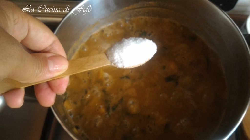 À ce stade, ajoutez également les cubes de potiron, en couvrant avec 3 louches de bouillon et laissez cuire à feu doux pendant encore 2 minutes