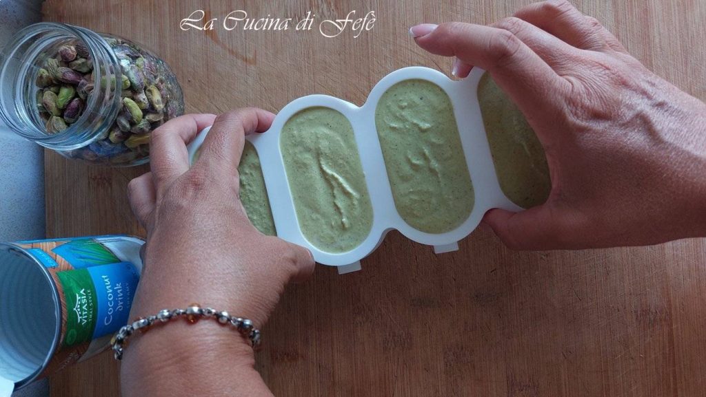 Préparer les sucettes glacées coco et pistache est très facile: tout d’abord, la veille assure-toi de mettre la boîte de lait de coco au réfrigérateur toute la nuit*. Le lendemain, dans une grande terrine mets les pistaches dans de l’eau chaude pendant environ 1 h**.