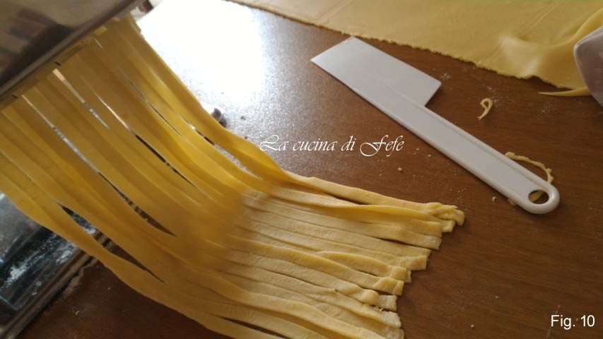 Une fois que les feuilles ont séché, passez-les dans le rouleau au format des tagliatelles (fig. 10).