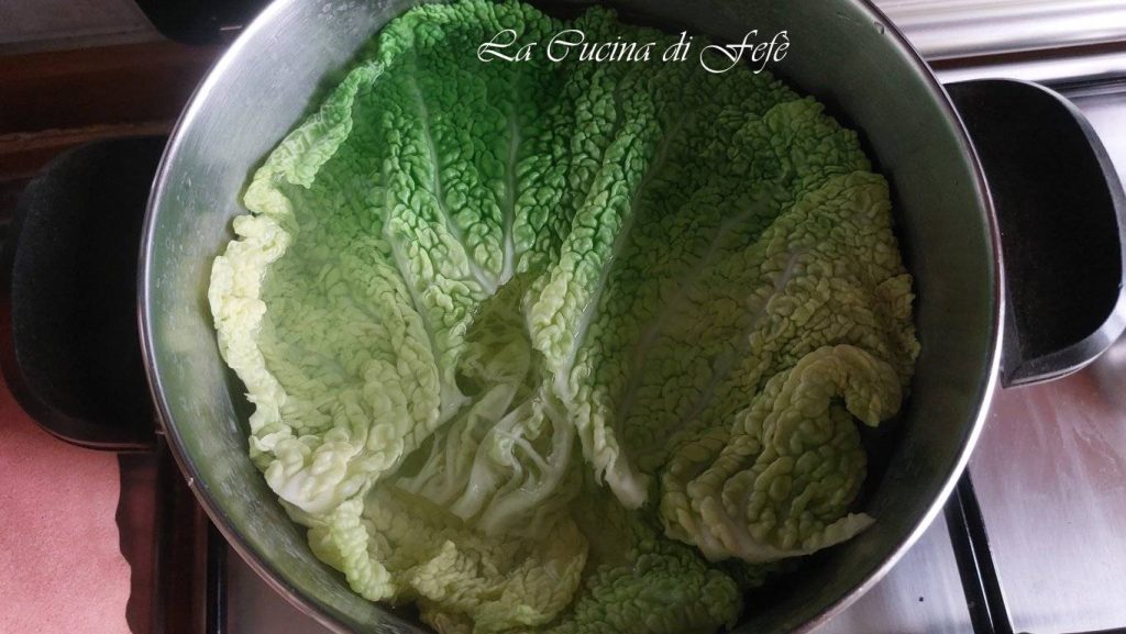 Commence par détacher 12 feuilles parmi les plus externes du chou vert. Lave-les bien sous l’eau courante et à l’aide d’un couteau, retire la nervure centrale plus coriace.