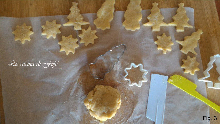 • Badigeonnez vos biscuits avec très peu de lait, puis décorez avec les vermicelles à votre goût et mettez au four statique préchauffé à 180°C pendant 12’/13′ (fig. 5).