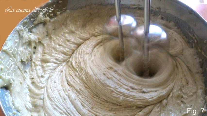 • Laissez-la refroidir pendant 30′ à température ambiante, puis transférez le bol au frigo pendant encore 30′, ensuite montez-la avec les fouets électriques jusqu’à obtenir une crème bien ferme (fig. 7).