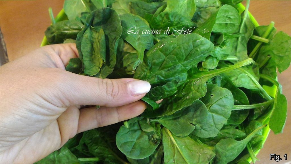 À la fin de la cuisson, éteignez, salez, poivrez et mettez de côté. Dans la même poêle, faites également flétrir les épinards avec un peu d’eau, couvrez et faites cuire pendant 5′ (fig. 4).