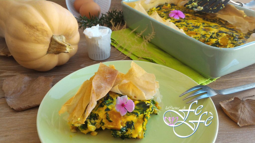 Celle que je vous propose aujourd’hui est la variante d’une recette que j’ai préparée l’été dernier à base de courgettes et de tomates cerises. Elle a tellement plu que j’ai voulu l’expérimenter en utilisant d’autres légumes comme les premiers épinards de la saison automnale ! Et aujourd’hui, j’ai pensé l’enrichir avec de la courge Mantoue pour lui donner un goût encore plus savoureux et doux. La base de pâte filo, selon moi, est fantastique, vous verrez que vous en tomberez amoureux ! Et à mon avis, elle est beaucoup plus légère que ses concurrents communs comme la pâte brisée et la pâte feuilletée, car ces dernières ont une composante très grasse comme le beurre ou d’autres graisses végétales saturées, donc nuisibles pour notre organisme ! Sans oublier que cela les rend également assez caloriques. La pâte filo, en revanche, est préparée en fines feuilles composées uniquement d’eau et de farine. Sur le plan nutritionnel, nous pouvons donc la considérer comme une source de glucides sans graisses. Et une fois mise au four, en créant des papillotes, des rouleaux, des tartes salées ou sucrées, ou tout ce que votre imagination vous suggère, elle devient très croustillante ! Cette recette est très polyvalente et deviendra un incontournable de votre cuisine, un plat unique qui, au besoin, coupé en carrés, peut se transformer en un apéritif savoureux ! Une tarte salée vraiment riche que vous pourrez réaliser facilement sans trop de préparation en cuisine.