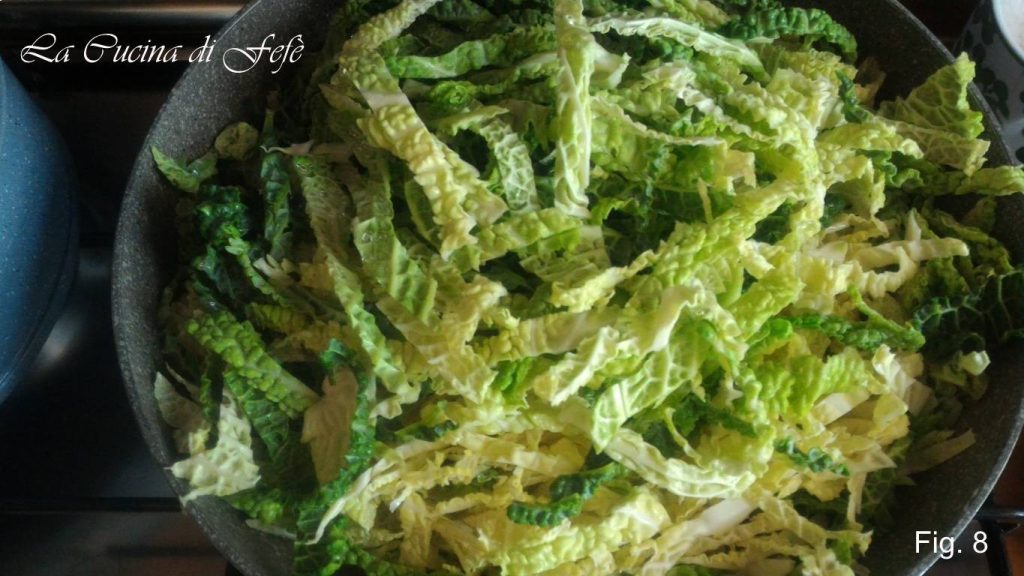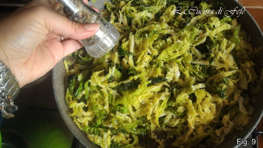Ajoutez ensuite le chou et laissez-le fondre à feu modéré pendant environ 18′, en ajoutant un peu d’eau chaude seulement si nécessaire.