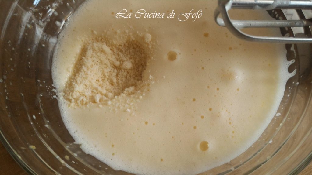 Vous devez obtenir un mélange clair et mousseux, puis ajoutez le parmesan râpé.