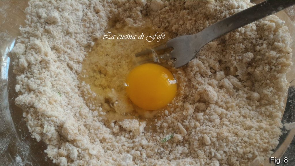 Ajoutez l’œuf et battez rapidement avec une fourchette (fig. 8).