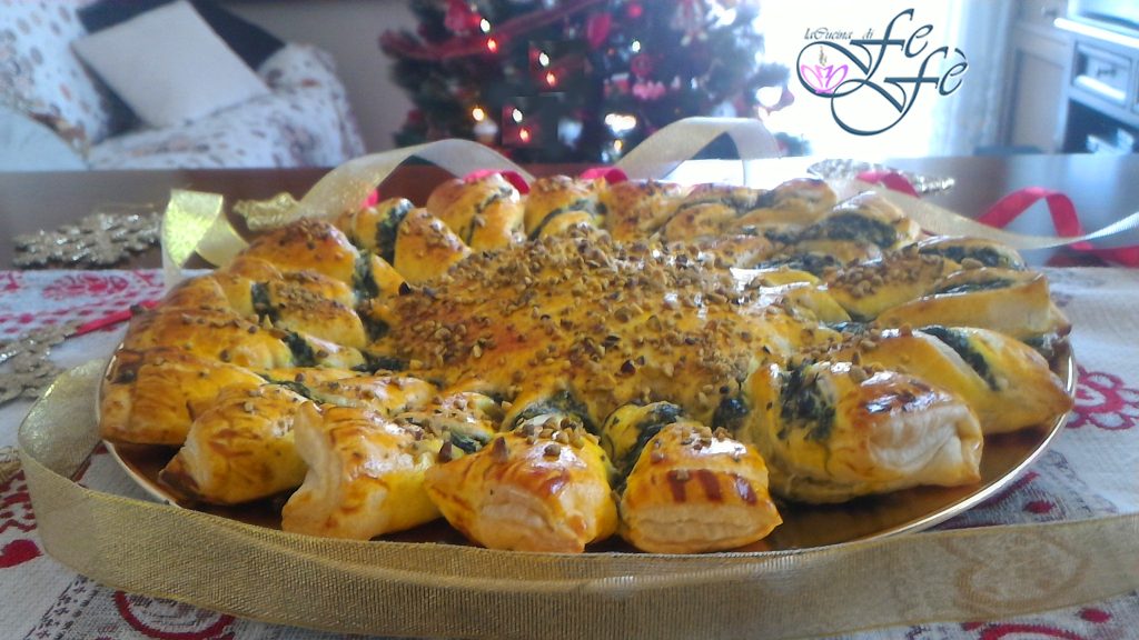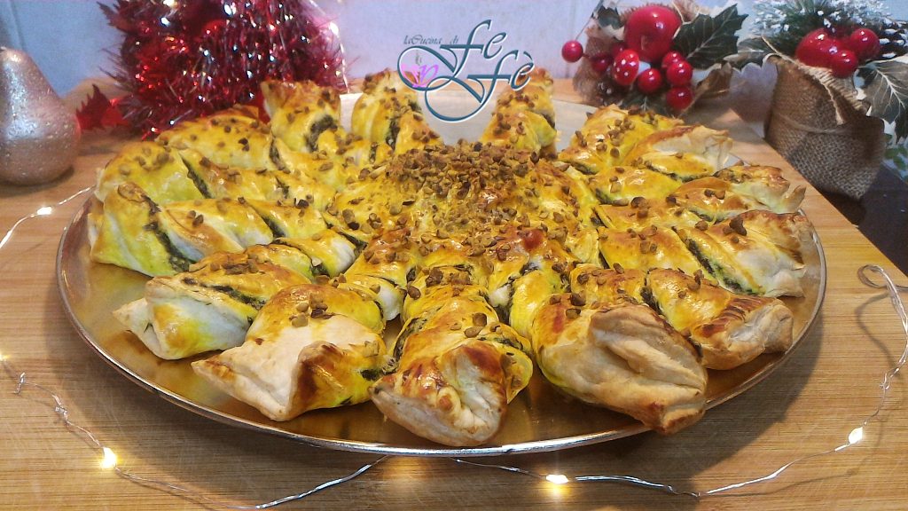 Nous sommes arrivés à la semaine de Noël, je ne saurais même pas dire comment, le temps a littéralement filé ! En vue de ces fêtes, je veux vous laisser une recette fabuleuse, très scénographique et gourmande, à savoir la tarte tournesol! Il s’agit d’une pâte feuilletée, garnie d’une farce d’épinards, de ricotta et de feta grecque, décorée sur le dessus d’une chapelure de pistaches très appétissante, qui en cuisant se torréfiera, devenant ultra-croustillante! Elle sera parfaite à présenter au centre d’une table, où chaque convive pourra arracher un pétale et le déguster accompagné d’un apéritif pétillant et frais! Au-delà des fêtes, vous pourrez préparer cette tarte pour toute autre occasion, à emporter par exemple lors d’une sortie, au bureau, à la mer, où que vous le souhaitiez ! Bref, une recette doublement polyvalente, car vous pourrez varier à chaque fois de garniture ou en créer plusieurs ensemble pour un buffet avec des garnitures délicieuses et très gourmandes! Je vous le garantis, vous ferez toujours un grand succès !