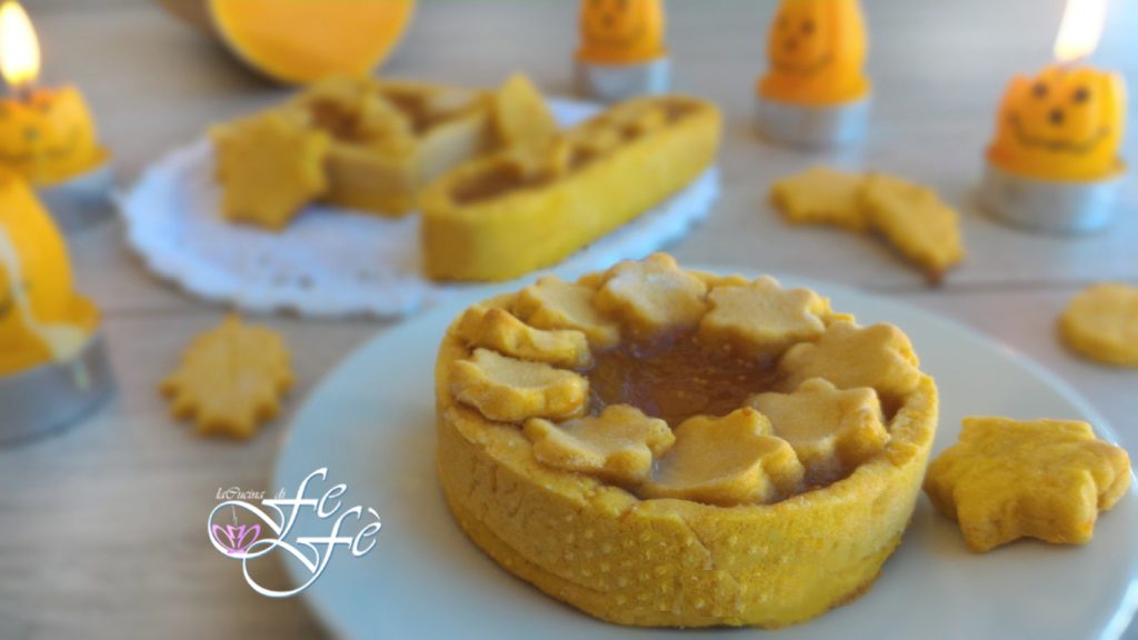 Et voici une idée sympa pour utiliser la pâte de pâte brisée à la courge que je vous ai proposée il y a quelques jours ! Je les ai réalisées pour fêter sobrement la fête d’Halloween, que je partage uniquement pour l’esprit ludique, même si je ne l’apprécie pas particulièrement ! Vous pourrez, en revanche, les préparer à toute autre occasion, car elles sont parfaites pour le goûter, pour le petit déjeuner et, de par leur taille, même comme petits gâteaux d’anniversaire ! Ce sont précisément des tartelettes de pâte brisée à la courge avec un cœur de confiture de figues, dernier reste de mes provisions maison. La combinaison de ces deux saveurs est vraiment surprenante et conquérra toute la famille ! Je publierai bientôt aussi les biscuits que j’ai préparés avec le reste de la pâte, une autre idée sympa pour garnir des gâteaux, des coupes de glace ou tout simplement à savourer avec du thé. La recette est à base de farine de riz, donc parfaite même pour ceux qui sont intolérants au gluten. Vous pourrez néanmoins la varier avec d’autres farines et des garnitures plus gourmandes à base de chocolat pour jouer avec les combinaisons de saveurs.