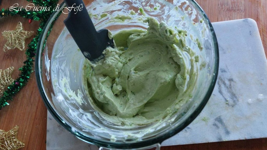 Maintenant, tu es prêt/e à farcir tes paniers. Transfère la mousse d’avocat dans une poche à douille jetable comme je l’ai fait ou utilise une simple cuillère à café. Dispose-la ensuite au fond de chaque panier jusqu’à remplissage.