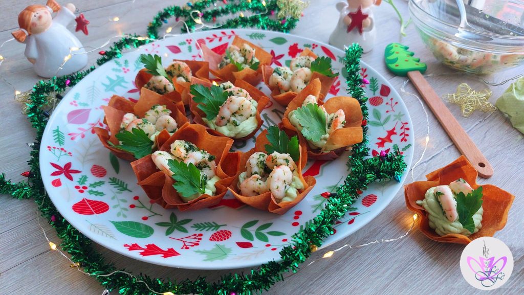 Et voilà…les tartelettes en pâte filo avec mousse d’avocat et crevettes sont prêtes à être dégustées!