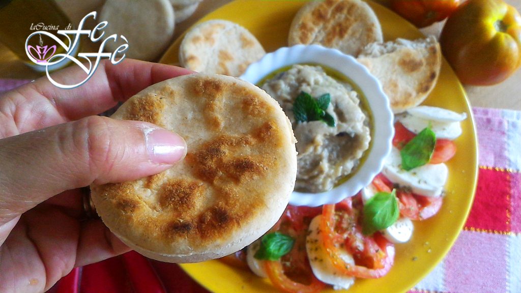 Ceux qui me suivent savent que depuis un certain temps, j’ai entrepris le projet d’ouvrir les portes de ma cuisine et de préparer des recettes en direct sur l’un des réseaux sociaux les plus populaires du moment ! C’est un engagement non négligeable, surtout quand il s’agit d’imaginer à chaque fois une recette rapide, facile et aussi bonne ! Je pense que proposer un plat régional comme ces tigelle modenesi, et les associer à l’un des accompagnements campaniens les plus renommés, la salade caprese, a été un vrai coup de génie ! Évidemment, que les Émiliens ne m’en veuillent pas, j’ai choisi de revisiter cette recette, en éliminant le saindoux et en allégeant la pâte avec de l’huile d’olive extra vierge et du yaourt grec ! Pour ceux qui ne les connaissent pas encore, les tigelle, aussi appelées crescentine, sont une sorte de petites focaccias idéales à couper en deux et à garnir de fromages tartinables et de charcuteries au choix ! À peine chaudes, elles s’enchaînent les unes après les autres, parfaites pour être utilisées à la place du pain, ou comme finger food lors d’un buffet et même pour un apéritif informel entre amis, accompagnées de délicieuses sauces ! Moi, par exemple, je les ai servies avec le babaganoush, une sauce typique arabe, composée principalement de chair d’aubergines, de tahini, d’aromates et d’épices variées. Un vrai régal !