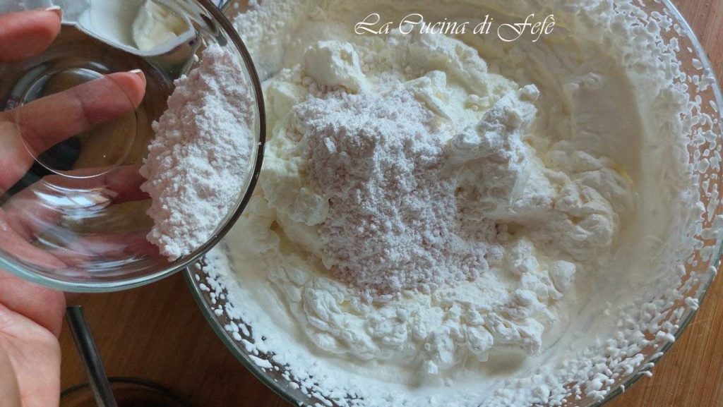 Ajoutez également le sucre glace et continuez à fouetter quelques secondes avec les fouets électriques, juste le temps d’incorporer tous les ingrédients sans défaire la crème.