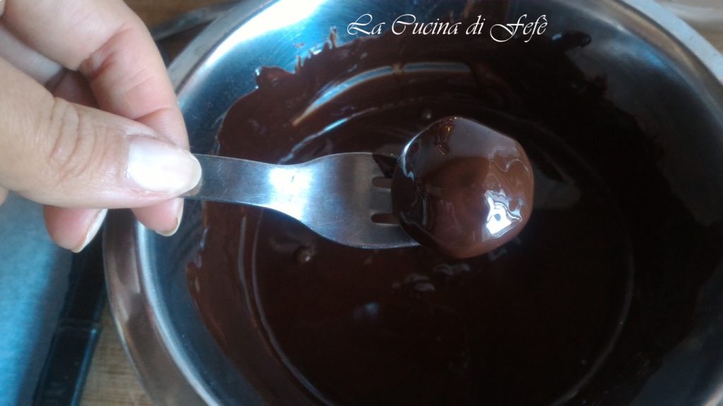 🟣 *L’ajout de l’huile de graines au chocolat fondu empêche son durcissement et le maintient à une consistance parfaite pour l’immersion. De plus, si pendant l’opération d’immersion des truffes, le chocolat devait se solidifier en devenant plus solide et non plus travaillable, pas de panique, il suffira de remettre le bol au bain-marie pour quelques secondes, la présence de l’huile facilitera son retour à l’état liquide.