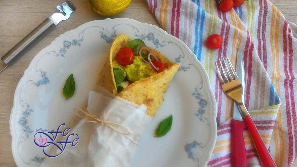 En été, on le sait, nous préférons consommer des repas plus frais et légers. Le mot d’ordre est frugal mais appétissant, pas banal. Et on aime le faire en plein air, que ce soit à la mer ou confortablement dans son jardin, en famille ou entre amis ! Alors, je vous propose une façon originale et alternative de surprendre vos invités et d’apporter à table un plat unique, qui sent les choses authentiques. Un wrap de piadines semi-complètes à l’huile d’olive extra vierge, beaucoup plus rustiques et plus légères, car sans saindoux et sans levure ! Une fois que vous aurez apprécié leur préparation maison, vous pourrez les garnir comme votre imagination vous le suggère. Une des garnitures traditionnelles est avec du jambon cru et de la mozzarella, mais si vous suivez par exemple un régime alimentaire végan, vous pouvez ajouter du tofu, accompagné peut-être d’aubergines, de courgettes et de tomates. Moi, je vous propose ma version végétarienne, avec des légumes d’été grillés, de l’oignon rouge de Tropea, des tomates cerises IGP de Pachino, de la mâche, de la mozzarella de bufflonne et une sauce à l’avocat au gingembre qui, je vous jure, ressuscite les morts ! Le tout enveloppé comme un sandwich et directement cuit à la poêle une minute de chaque côté pour leur donner ce croquant qui les rendra délicieuses et irrésistibles !