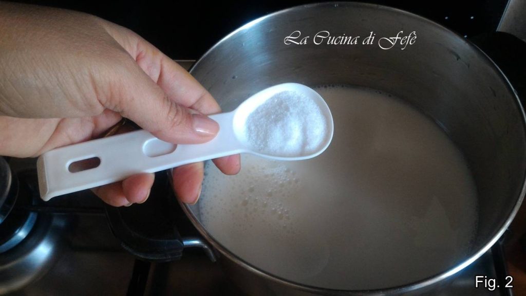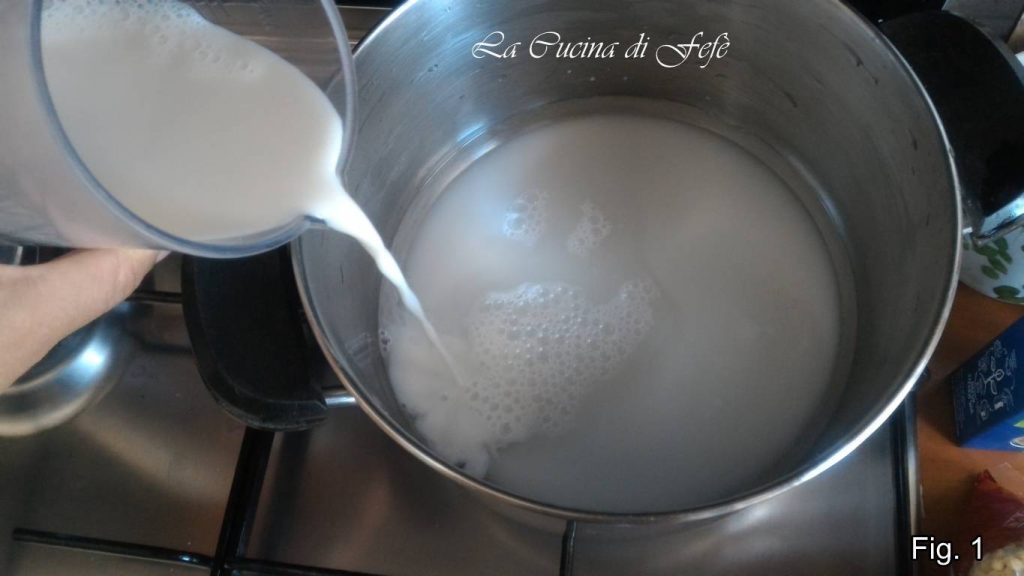 • Pour préparer les zeppole de riz, commencez par verser dans une casserole le lait et l’eau.