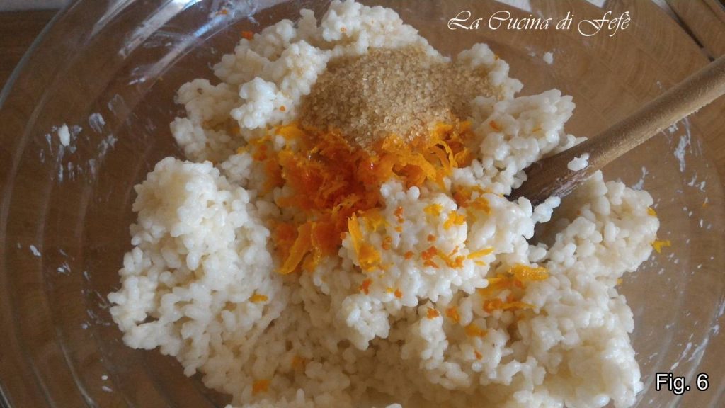 🔵* Important : laisser le riz absorber le lait ne signifie pas le laisser coller ou sécher dans la casserole ; il doit rester plutôt crémeux, sinon il ne sera plus maniable une fois tiédi et transféré dans un saladier.