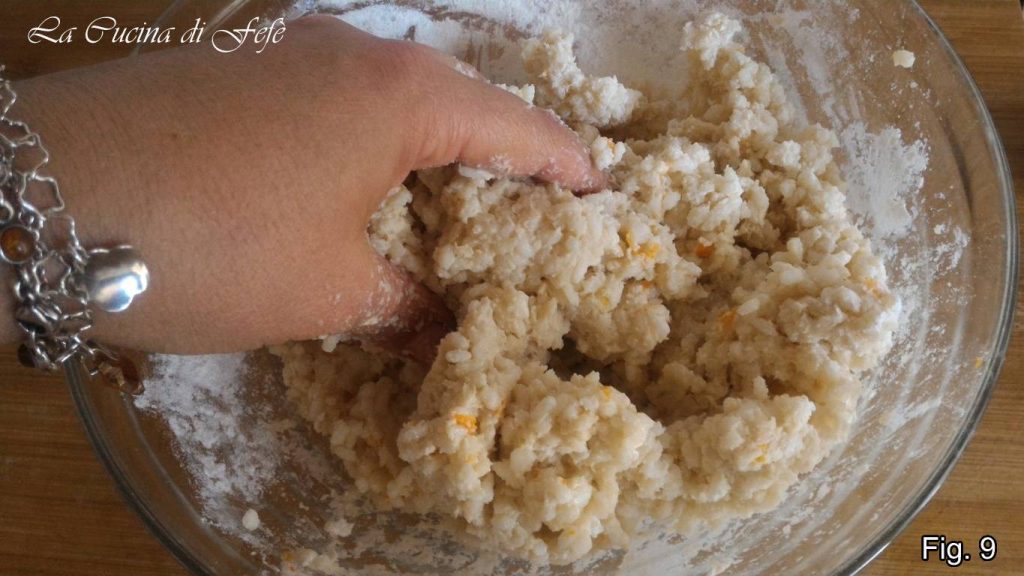 • Quand la pâte devient plus consistante, pétrissez avec les mains jusqu’à absorption complète de tous les ingrédients.