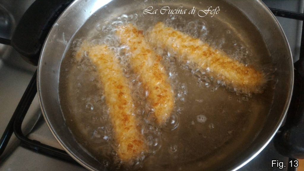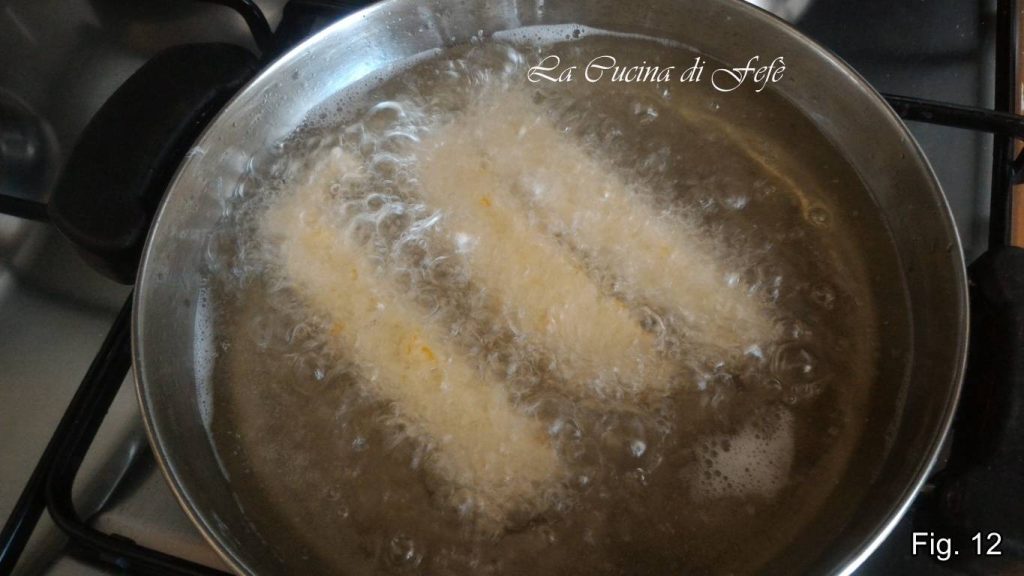 • Avec la lame d’un couteau, détaillez en cordons d’environ 2 cm d’épaisseur et formez une à une les zeppole. Plongez-les dans une huile bien chaude par petites quantités pour ne pas faire trop baisser la température.