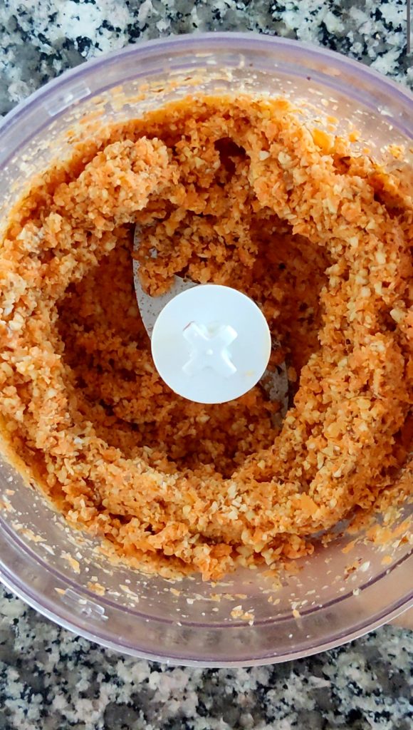 Pelez les carottes, coupez-les en morceaux et transférez-les dans un mixeur ou un blender. Ajoutez également les amandes et mixez. Montez l’œuf avec le sucre simplement avec un fouet ou même avec une fourchette.