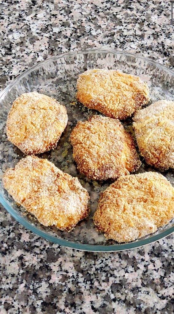 Il ne vous reste plus qu’à former les Côtelettes. Prenez une portion de mélange et compactez-le et aplatissez-le entre vos mains. Passez-la ensuite dans la chapelure en la faisant adhérer de toutes parts.