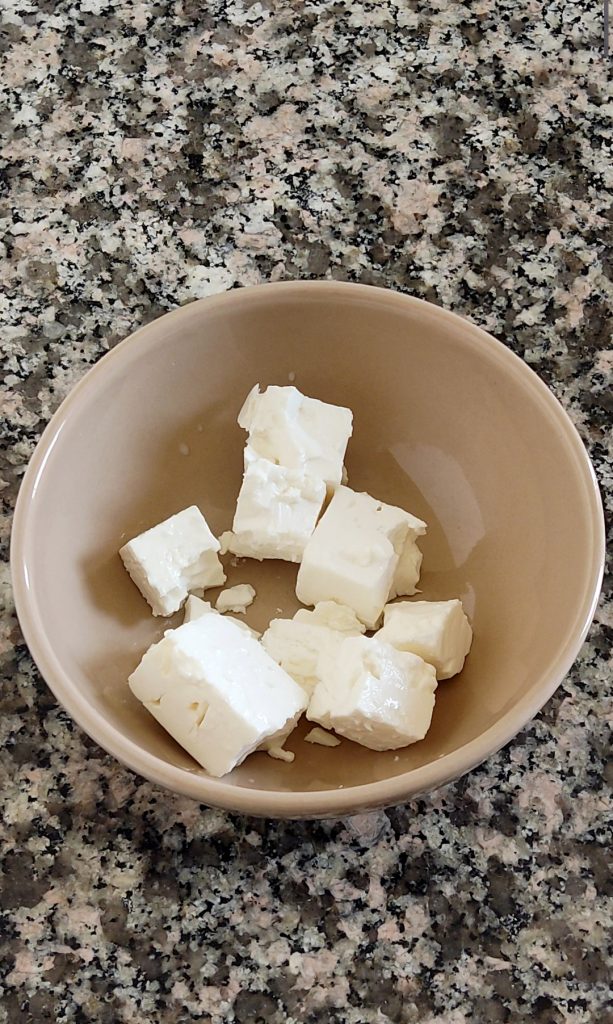Versez la feta dans un bol et simplement avec une fourchette, rendez-la crémeuse