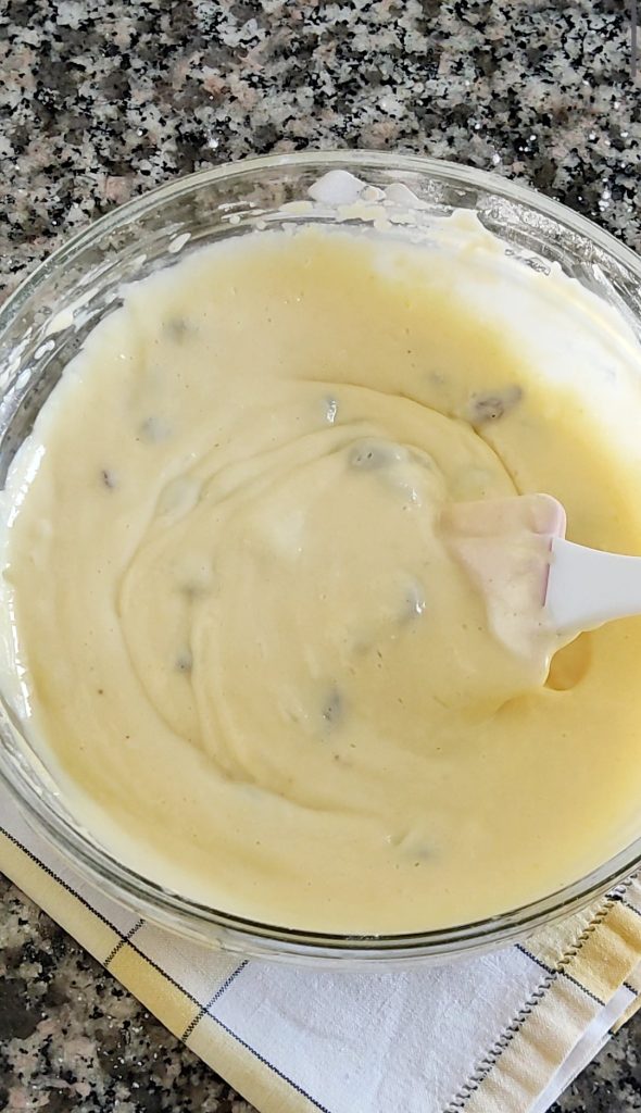 Égouttez bien le raisin sec et ajoutez-le à la pâte. Mélangez la pâte simplement avec une spatule.