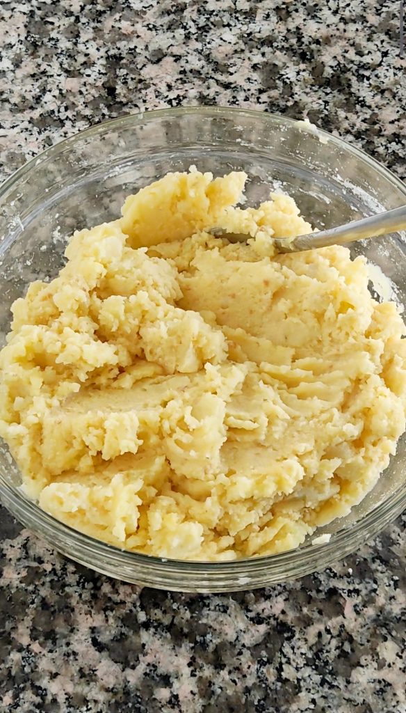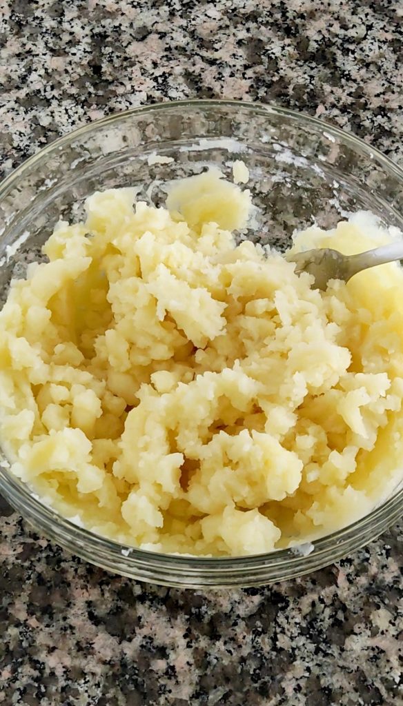 • Réduisez les pommes de terre bouillies en purée à l’aide d’un presse-purée dans un bol.