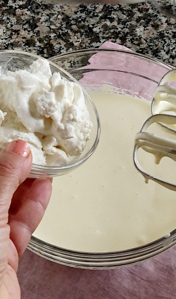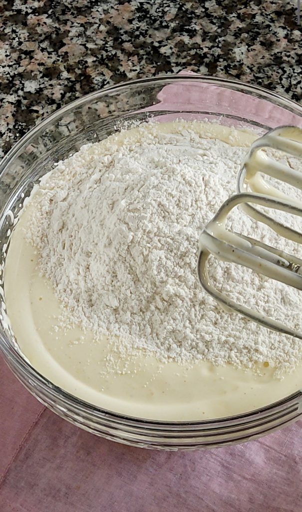 Ajoutez la farine tamisée et la levure chimique et mélangez.